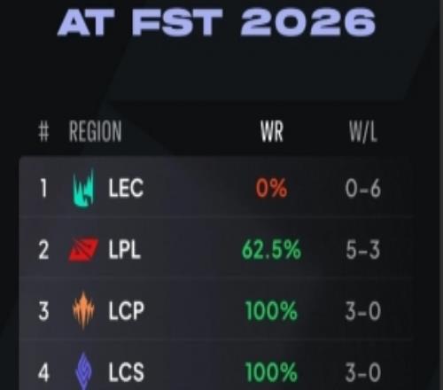 外媒统计26先锋赛LCK对阵其他赛区胜率:面对LEC0胜率