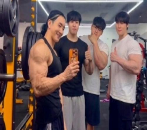 体育资讯4月19日称 健身教练分享了和HLE三人组Kanavi、Zeka、Gumayusi的合照,并P了一张三人化身“健美先生”的照片。