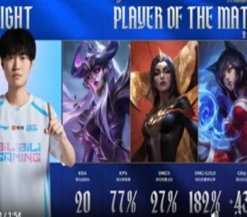 体育资讯4月19日称 昨日LPL第二赛段BLG战胜IG,赛后BLG中单Knight发布对阵IG个人高光,并配文:KD 20,再获全场最佳!